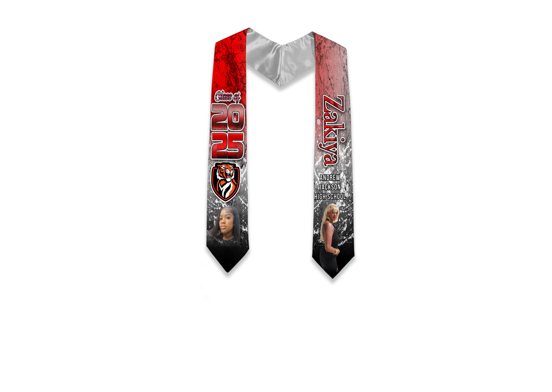 The stole itself would be made of a smooth, satin-like fabric that allows for rich color saturation and crisp graphics.