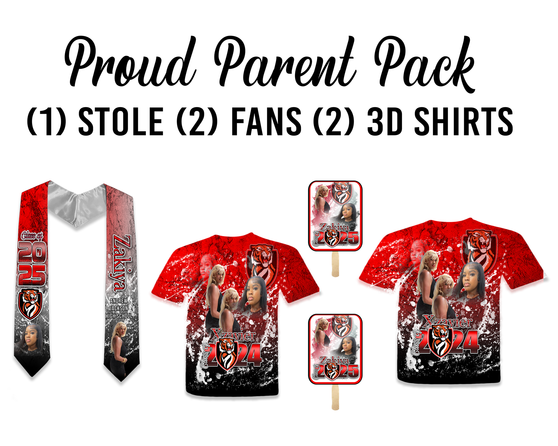 A graduation package deal for two parents that includes 2 full sublimation shirts and a custom graduation stole would be a fantastic way to help them celebrate their child's achievement in style.