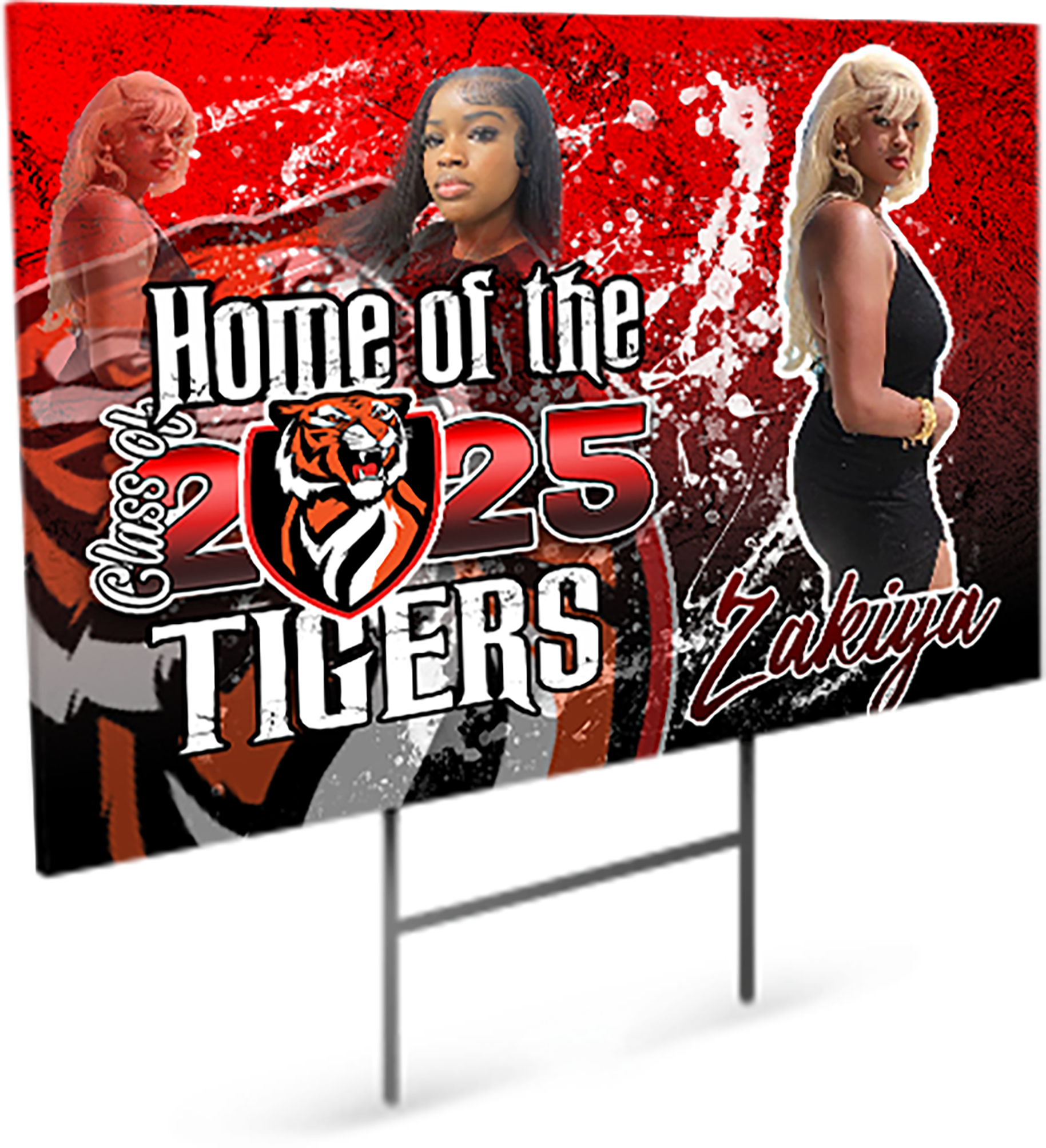 graphics or logos would be incorporated into the sign, such as a school mascot, a company logo, or a celebratory image like balloons or fireworks. If it's a political sign, there might be a small American flag or a symbol that aligns with the campaign.